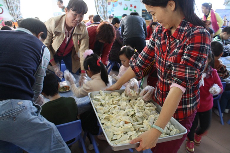 为了营造一种和谐、喜庆、温馨的氛围,更进一步促进亲子间的情感,各班级在老师的精心组织、家长的配合下包饺子,家长手把手地教幼儿包饺子,孩子们在活动中体验劳动的快乐和大家庭的温暖亲情,吃着自己包的饺子,孩子们觉得格外的香!