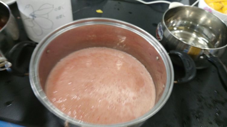 咦?菠萝汁的颜色变白了,没有了原先的黄颜色