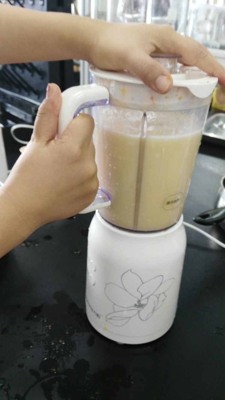 盖好盖子~启动榨汁机