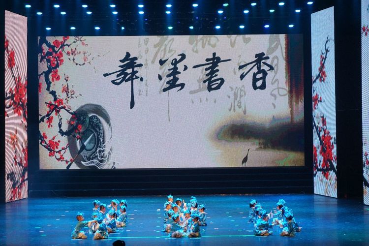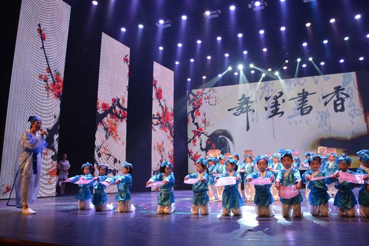 教师舞蹈《龙文》拉开了书香月活动的序幕,一朵朵娇美的杏花在优美的歌声中灵动成一幅美丽的水墨画。
