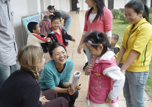 在活动中,我园的小朋友们与外国留学生一起交流,一起玩简单的游戏。小朋友和留学生们都兴致勃勃地融入于游戏当中,有说有笑,现场气氛非常活跃,大家都沉浸在活动现场的欢乐海洋当中……