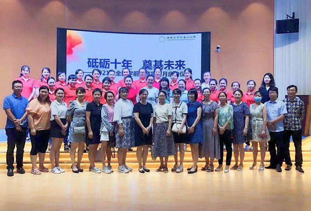 为了推进全国第十个学前教育宣传月活动的开展,聚焦学前教育十年砥砺奋进之路,全面系统宣传展示学前教育辉煌成就与崭新面貌。2021年5月31日我园在桥西园举行了“砥砺十年 奠基未来 全国学前教育宣传月”启动仪式。学校教辅单位联合第二党总支书记、幼儿园正副园长、家长代表、教师代表、幼儿代表参加活动,分享总结、梳理展示教育成果、创新轨迹等发展新实践、新经验。