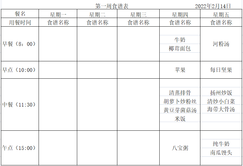 WilliamHill体育2022年春季第一周食谱