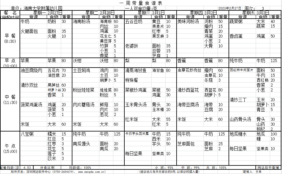 WilliamHill体育2023年春季第3周食谱