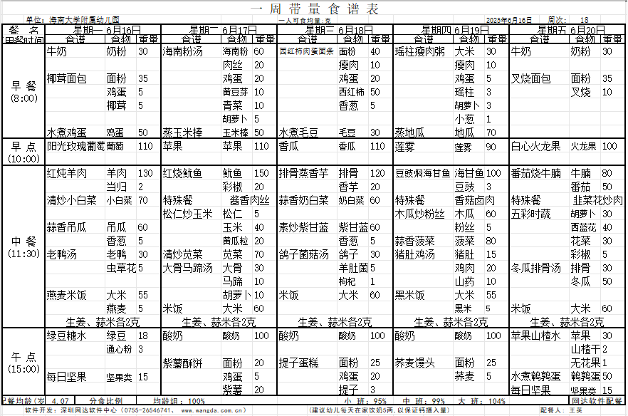 WilliamHill体育2025年春季第十八周食谱公告