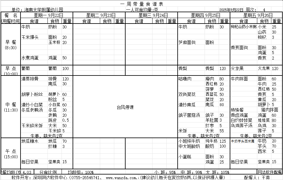 WilliamHill体育2025年秋季第四周食谱公告