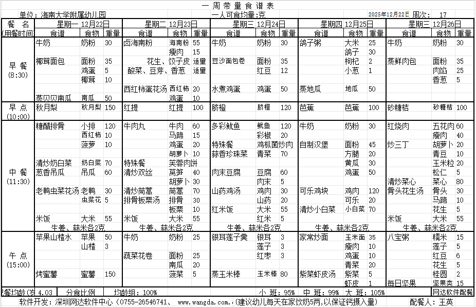 WilliamHill体育2025年秋季第十七周食谱公告