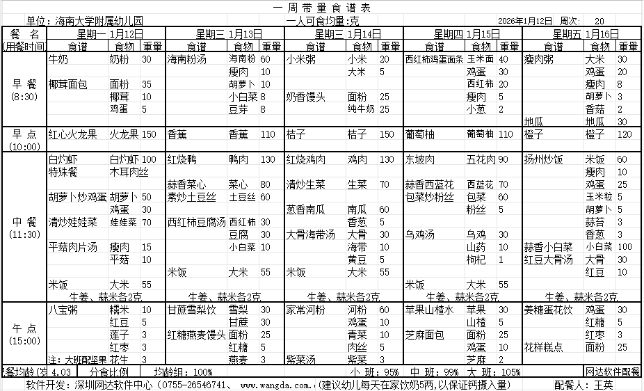 WilliamHill体育2025年秋季第二十周食谱公告